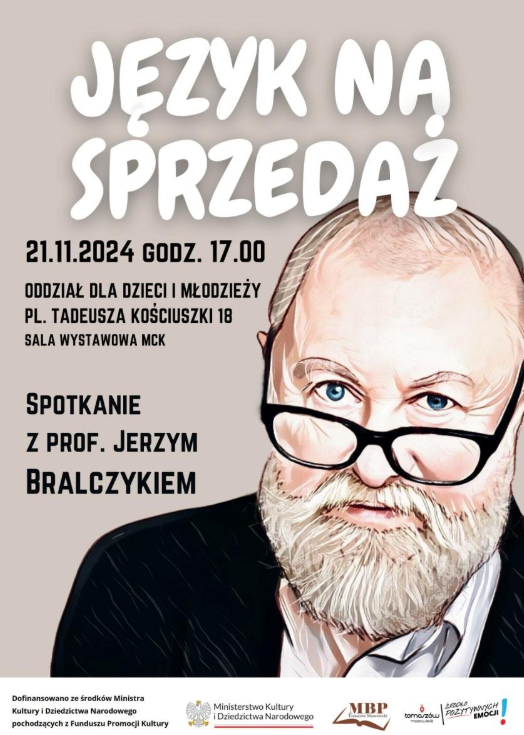 21 listopada 2024 r. o godz. 17.00 tomaszowską bibliotekę odwiedzi prof. Jerzy Bralczyk. Wyjątkowy gość opowie o przemianach polszczyzny i języku na sprzedaż.
